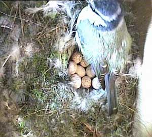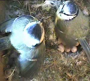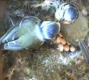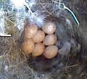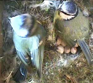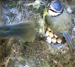 Interestingly, we have hosted great tits five times so far and on four of those occasions only 5 eggs were laid. The fifth clutch had 6 eggs! Our Field Guide quotes 9.5 eggs as the average bluetit clutch, and the BTO quotes an average clutch of 10 eggs - not too far from our experience. The gap is much wider for great tits where our Field Guide quotes 10.5 eggs and the BTO quotes only 8. I wonder why our great tits are so different? (Follow the links for more BTO data about these bird species.)