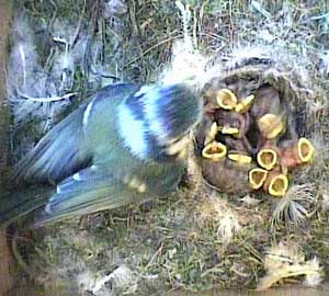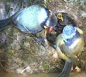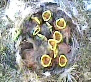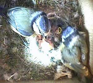 It is interesting to see the technique the parent birds use to make sure all the chicks get fed. They offer the food item to each chick that shows any interest, taking it away again if the chick doesn't grab it quickly enough. If a chick has problems swallowing it, the parent will take the food out of the chicks beak again and try another chick. This goes on until a chick is hungry enough to grab the food and swallow it quickly.