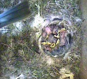 As usual, a fecal sac was produced afterwards by the chick, and Ben collects it and takes it out of the nest box.
