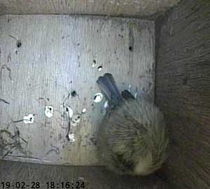 Females are programmed to keep the nest box clean as they roost in the box every night to keep the chicks warm when the they are little. They only stop when the chicks get too boisterous to spend the night sitting on them!