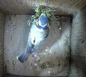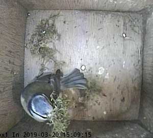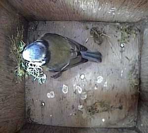 She seems strangely reluctant to let go of the moss she is carrying in her beak.