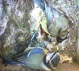 Another picture of both parents. I think it is Ben feeding the chicks and Bella watching.