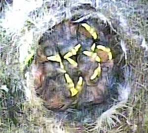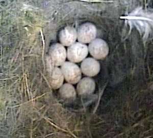 Bella and Ben with 8 of their chicks visible. Bella is at the topof the picture and Ben at the bottom.