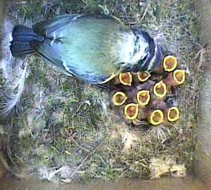 Bella with 10 gapes showing. As presumably, she is also feeding one, that makes 11 again!