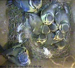It is now shortly after 8 o'clock, and I have only been able to see 7 chicks so far in Box2. If one has fledged, and they all look as though they could go soon, it either went very late last night, or more probably, first thing this morning.