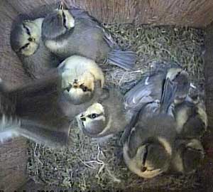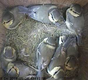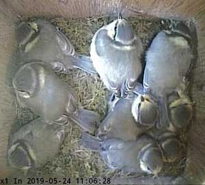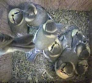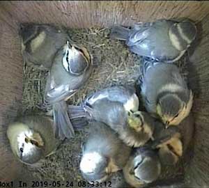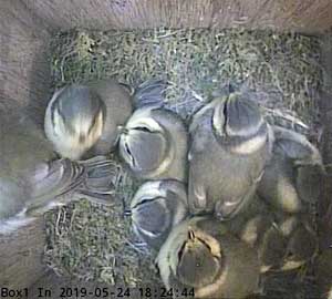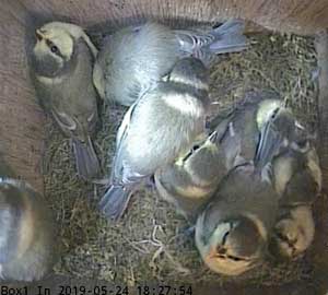 This picture was taken at 5.40pm. None of them is showing much sign of wanting to leave the nest box.