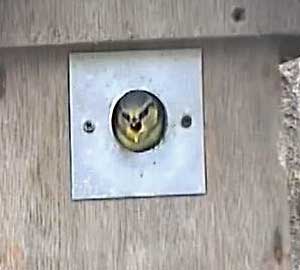 This chick looks serious. It's calling while it is in the exit hole. Perhaps it won't be long before it goes!
