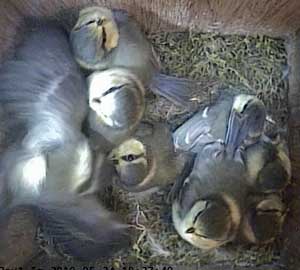 The remaining chicks clearly don't quite know what has happened. Some seem surprised, bu most show no interest in this momentous event at all!