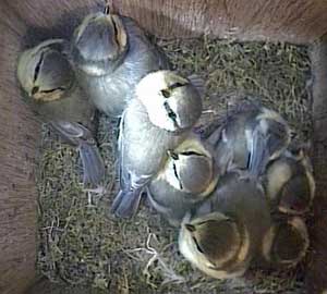 At least being spread out like this means that it is easy to see that there are still 9 chicks in the nest box.