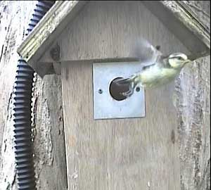 However, suddenly a fifth chick decided to go and with little prevarication it left the nest box.