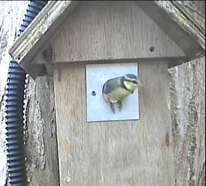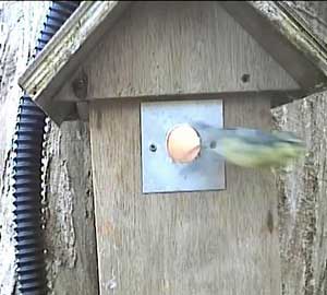 Inside the box, you can see the chick on the exit hole, and the rest of the chicks showing absolutely no interest whatsoever.