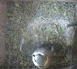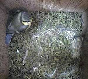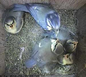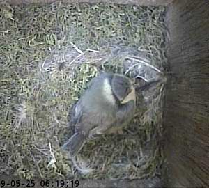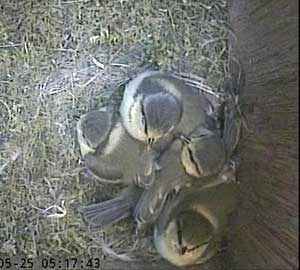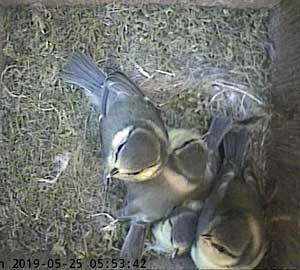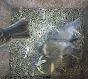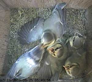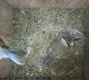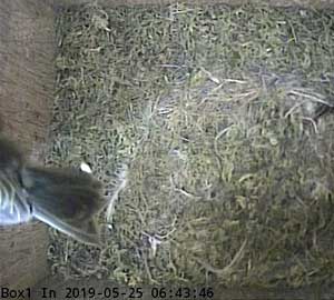 Twenty five minutes later, the last chick still hasn't even looked out of the nest box.