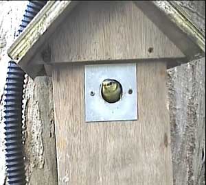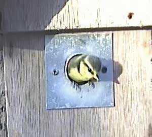 This chick spent quite a while in the exit hole. Every now and then it would drop back into the box, only to return to the hole a few seconds later.