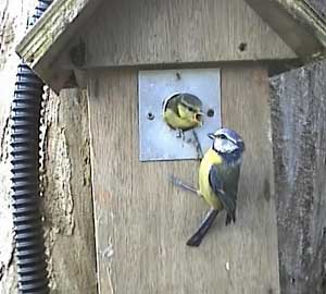 How they split their time between the chicks that have fledged and those that still remain in the nest box is a puzzle!