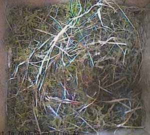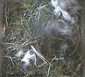At the end of the day, there are a few more feathers. I think her nest is as prepared as it can be for the start of egg laying.