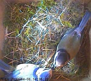Chloe in Box1 is not far behind. However she has yet to finish off the nest with a few feathers.