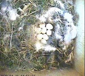 At last Daisy has given us a good view of her clutch of eggs, the first one since the potential egg on 12th April. This looks like 8 eggs to me.