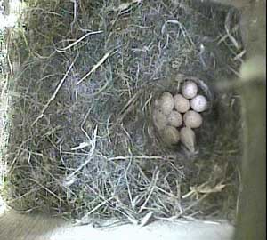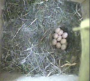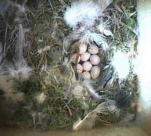 It always surprises me how long female bluetits leave the eggs un-sat-on! They seem to survive though.