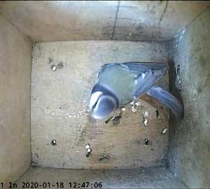 None of these goings on seem to affect the fact that at the moment a bluetit is roosting in the box every night.