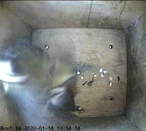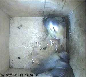 Less than a minute later, the bird inside the box is clearly making hostile noises towards another potential visitor.
