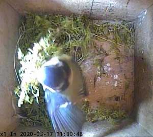 The trouble is, at this time of year our bluetits spend a lot of time appearing to be busy, but in fact doing not a lot. It's almost as though they have found their nest site and want to make sure some other bird doesn't try to grab it, but it's too early to get on with breeding. So they fuss about, taking stuff into the box and then taking it out again. In the past, I have seen a complete nest built from scratch in a couple of days, so it can be done rapidly when necessary!