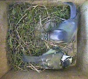 The birds in both boxes always seem to be bringing nesting material into their boxes, but they must be removing it again as frequently as the boxes don't seem to get any fuller!