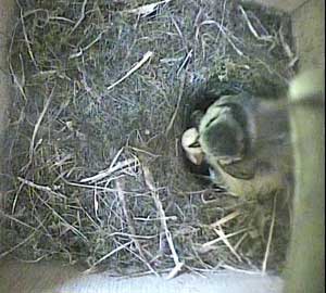 Here Chloe is begging for the food that Chris has brought to the nest box.
