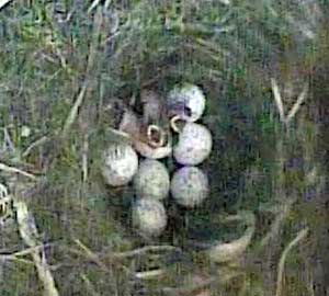 Ten minutes later another egg appears to have hatched, as Chloe has another piece of eggshell in her beak.