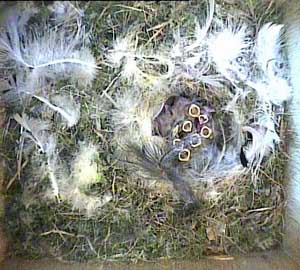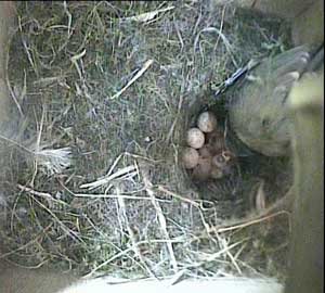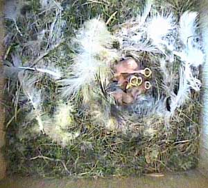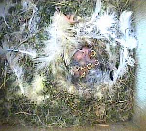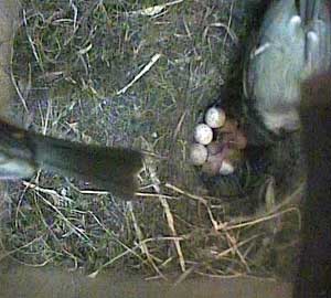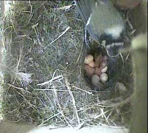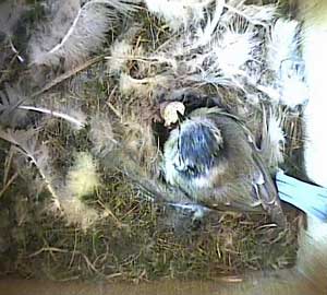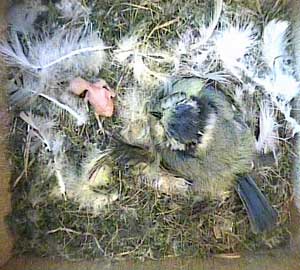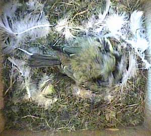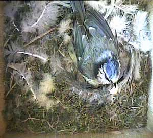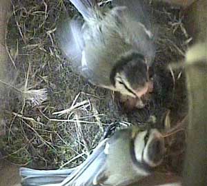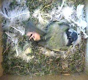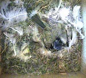 This concern about Daisy made me realise that I hadn't seen Drake for ages! As a result, I examined the video record until I found him. His last visit to the nest box was yesterday, Tuesday 5th May, at 8.10am! No wonder the chicks seem hungry! Until that time on yesterday he had been coming to the nest box assiduously every 5 minutes or so with some food - and then he suddenly vanished. I'm afraid that if he doesn't reappear first thing tomorrow morning, the chicks are doomed. No lone female can manage to keep chicks this young warm and at the same time adequately fed!