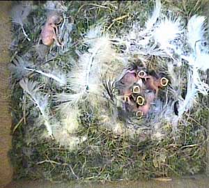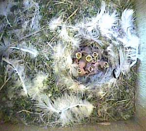 If you look carefully, you can see 8 beaks here, 7 of which are gaping wide!