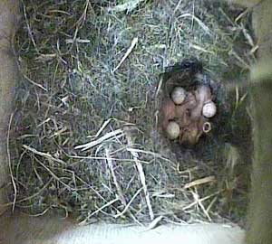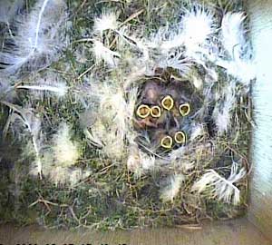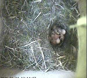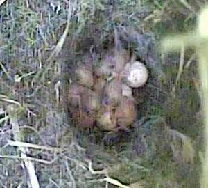 At 7 o'clock Chloe's 3 eggs are still in one piece. It is odd how quiet the chicks are when compared with the chicks in Box2. Is it just that they have full stomachs or is it a difference of temprement?