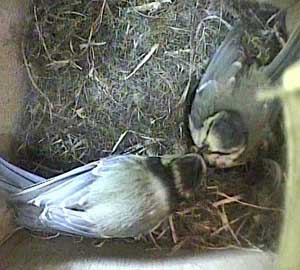 This shot was taken at twenty to eight. It is strange that at this time Daisy is not with them. Perhaps she realises they need food more than comfort! However, although she comes in from time to time, she hasn't been as frequently as Drake had before he disappeared on Tuesday morning.