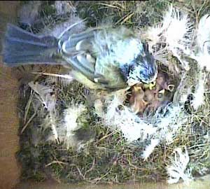 As you would expect, Daisy has some food with her when she returns to the nest box