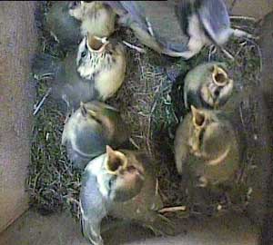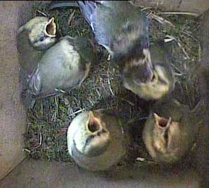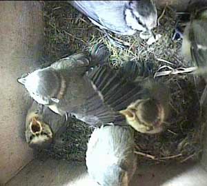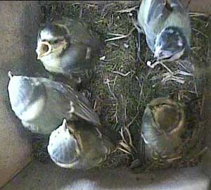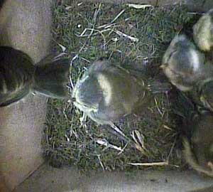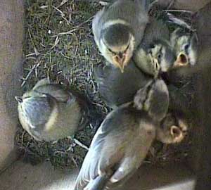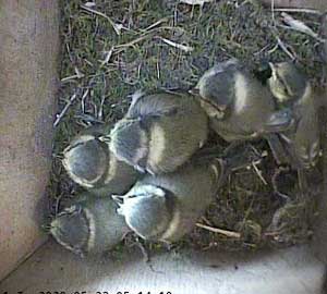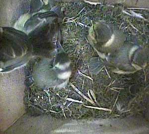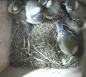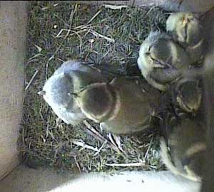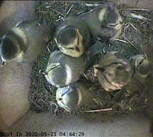 This is the last picture of the day. It's a quarter to nine. The feeding rota has finished and the chicks are settling down for one more night in the nest box.