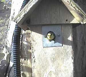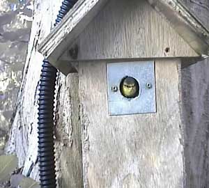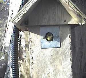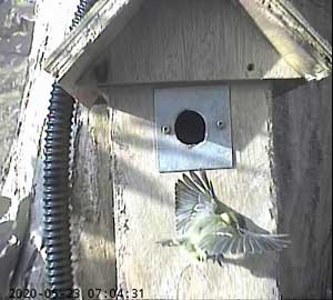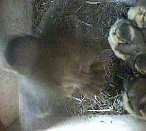 The time is 5.02am and you can see that a chick is already looking out of the nest box.