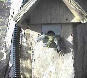 But no - it's all to frightening outside the nest box. Remember, this might be the first time it has really looked outside.