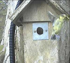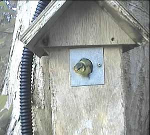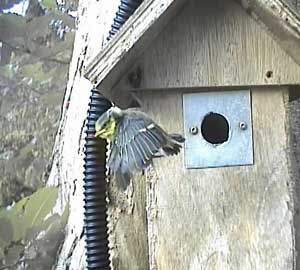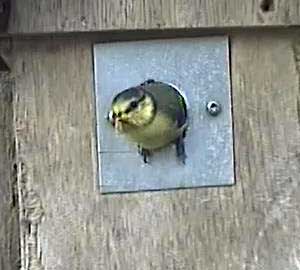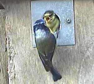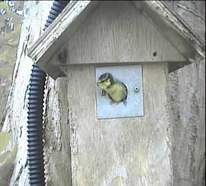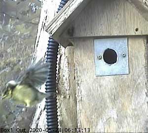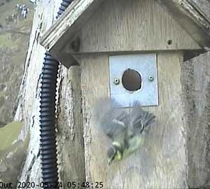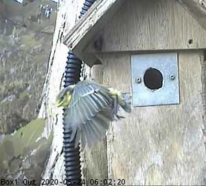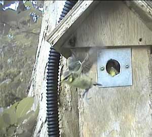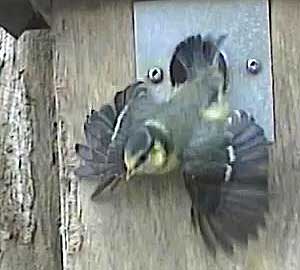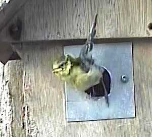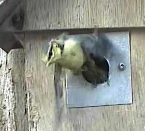 It is three minutes after the last chick that chick number 4 takes to the air. You can see where it is thrusting itself off from the nest box ...