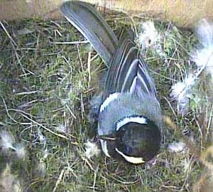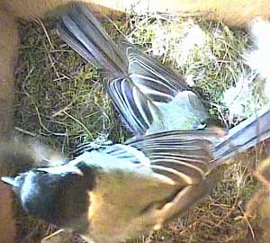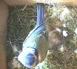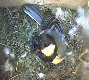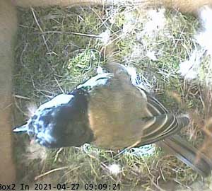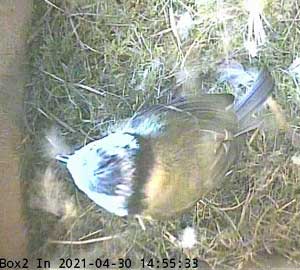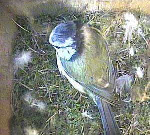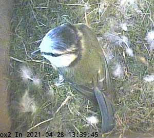 What's going to happen this year in Box2 - if anything - is still uncertain! Here is the great tit back for a visit - and this time it's inside the box!