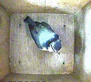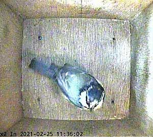 I was getting increasingly concerned that Box2 didn't have a pair of bluetits who had taken possession. However, when I looked at the Overview on this website to see what has happened in previous years, I was encouraged to see that nest building often did not start until well into March and sometimes it was as late as April.