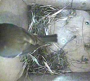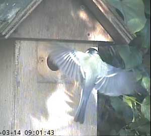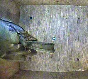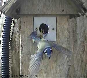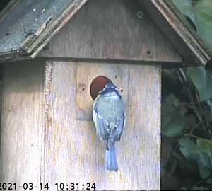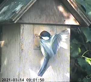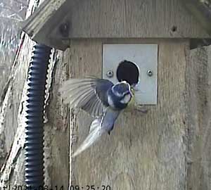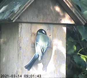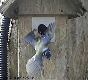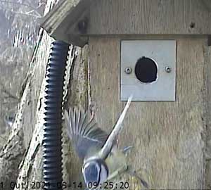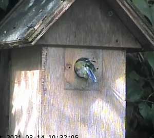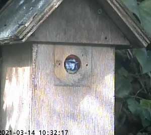 It looks as though a great tit is interested in Box2. I had hoped that removing the plate over the entrance that was restricting it to birds that could get through a 28mm hole, I would have some new visitors. I think these are the only ones we have had so far!