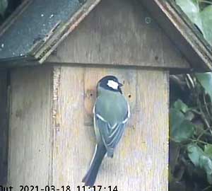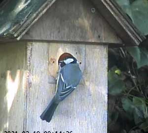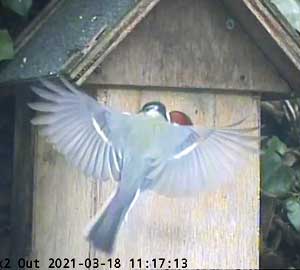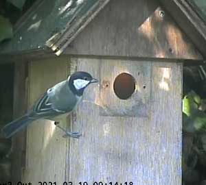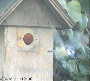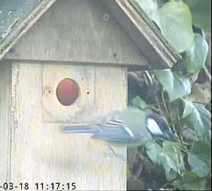 Here's the great tit paying another visit to Box2. Will he attempt to go into the box this time?