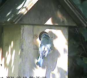 At least he doesn't prevaricate, hanging around on the entrance hole - in he goes!