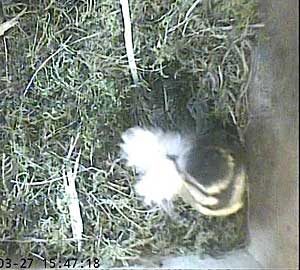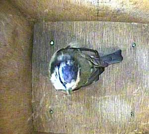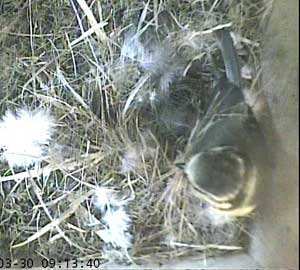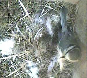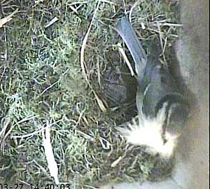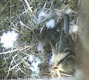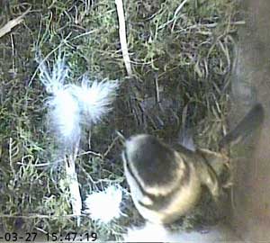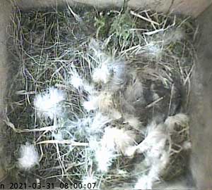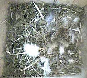 Ella is now bringing feathers into Box1. She must think her nest is nearly complete.