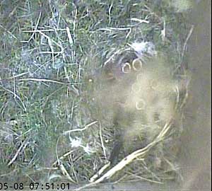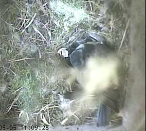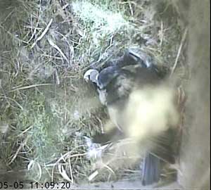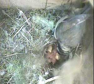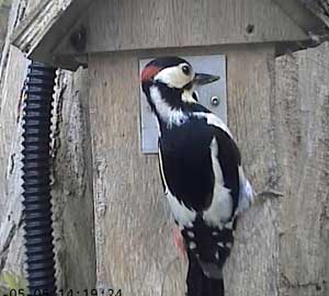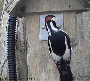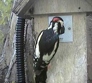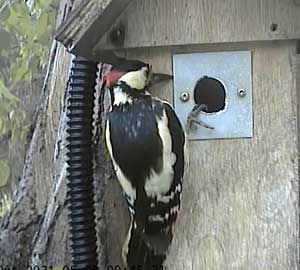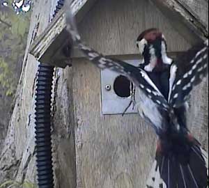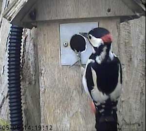 At least the chicks are too young to get out of the nest cup, so the woodpacker will not be able to reach them - I hope!