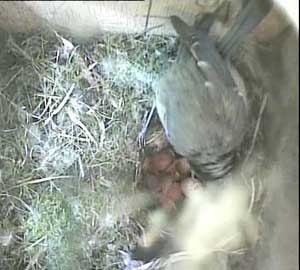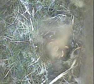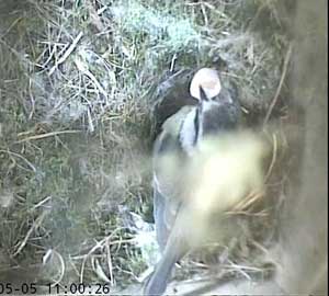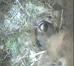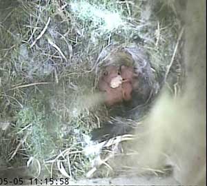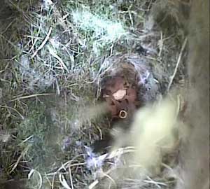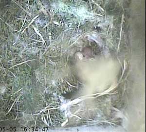 Five beaks are visible here in spite of the lump of moss obscuring much of the nest cup area.
