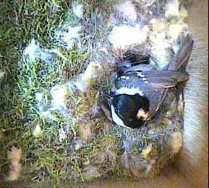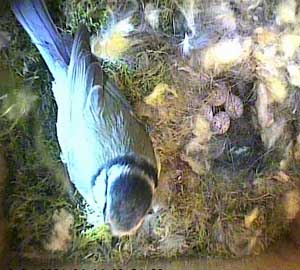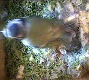 During the whole of this period, there was no sign of Sooty who finally appeared at 10 past 4 when she made a brief appearance as evidenced by this picture. I'm sure she came back later to roost in the box, but by that time I had turned the system off. I find it remarkable that she seems so unworried by Lucy's interference.