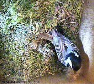 At least Sooty now seems to be getting on with it. Here she comes with more nesting material.