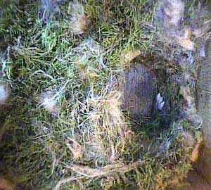Another beak full of fluffy stuff. This is primarily needed to line the nest cup, but all the birds I have watched in the past spread it around all over the place. They often subsequently sit in the nest cup and pull it into the nest cup. No doubt Sooty will do this later.
