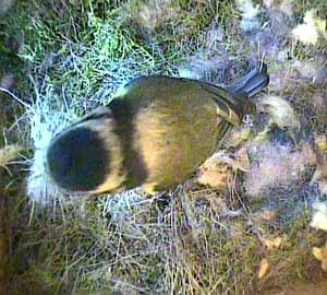 But does Sooty stop Lucy pinching her nesting material? Apparently not! This image was captured only two minutes after Sooty visited the nest.