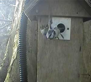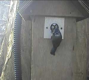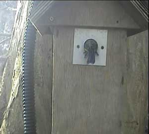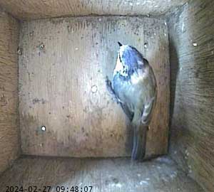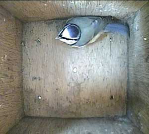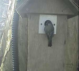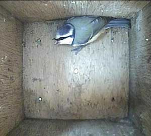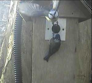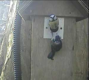 Judging by the reaction of the bluetit in the box, they are not partners.